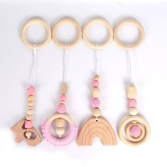 4PCS Nordic Kids Wooden Beads Hanging Decorations Nursery Gym Play Accessories Wood Beads Hanging Decor For Kids Room Decor