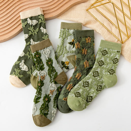 5Pairs/set 2021 3D Floral Socks Women's Socks Palace Retro Ladies Cotton Socks Embossed Pink Floral Combed Cotton Socks Kawaii